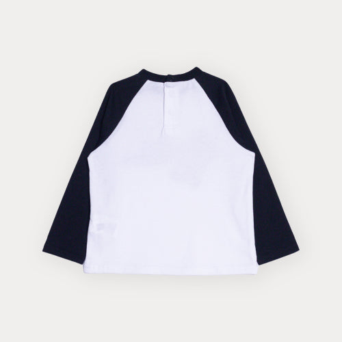 Franela De Algodón Blanca Y Mangas Largas Negras Con Gráfico De Dinosaurio Para Bebe Niño