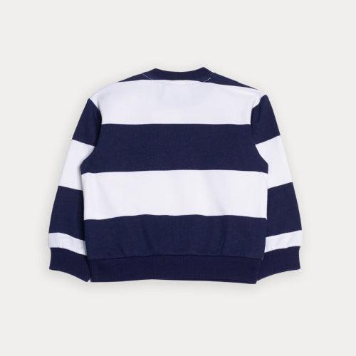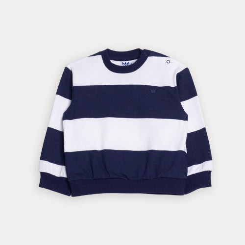 Suéter De Algodón Con Estampado De Rayas Azul Marino Y Crema Para Bebe Niño