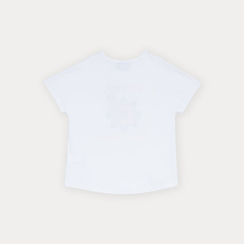 Franela De Algodón Blanco Con Gráfico De Flor Para Niña